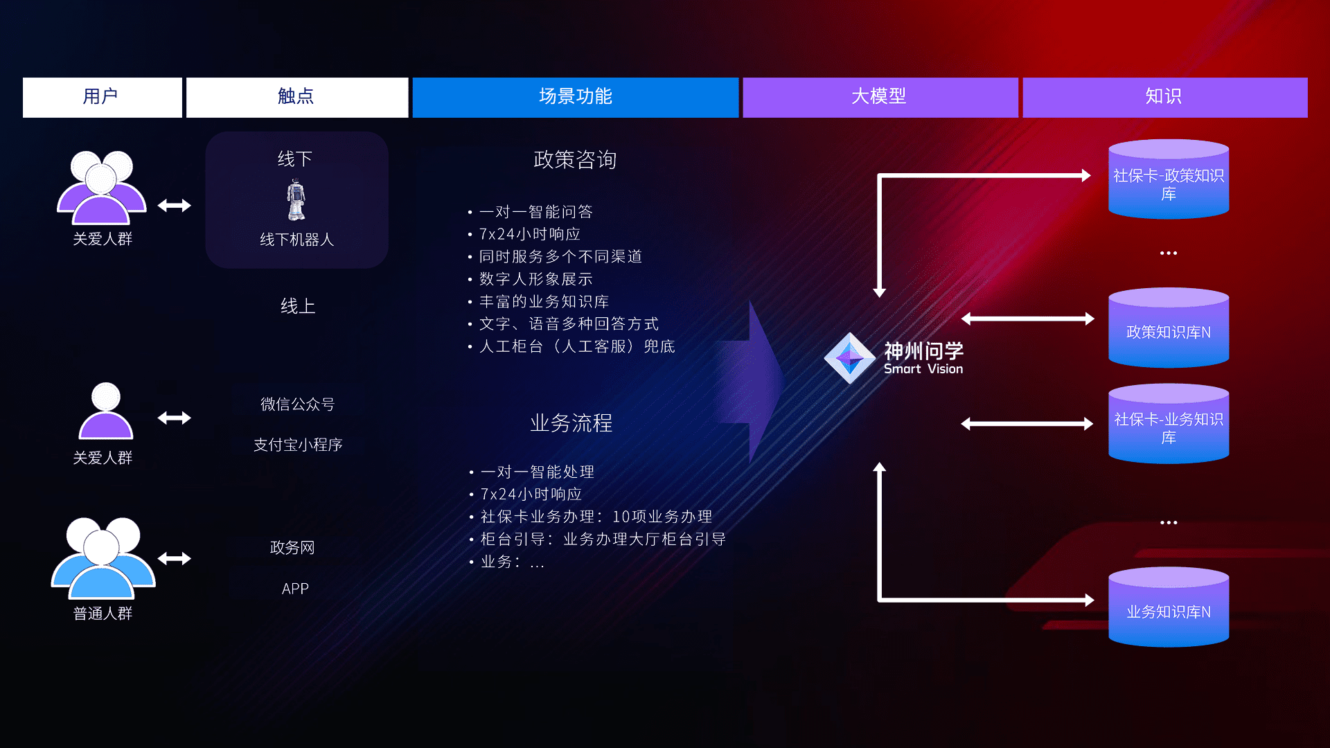 • 线上线下全覆盖:线上提供微信公众号、、、、支付宝小程序、、政务网、、、、app多种渠道,,,与线下机器人形成完整服务体系。。。。